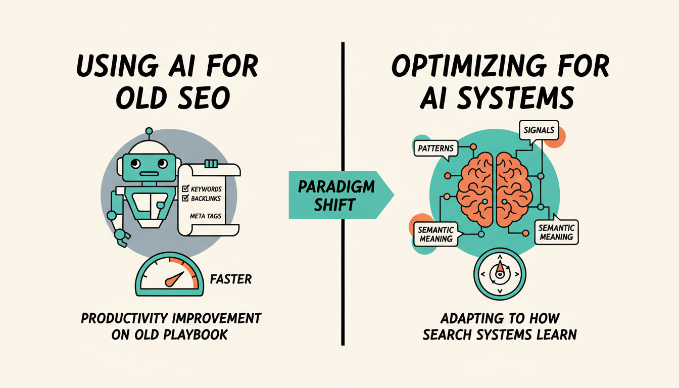 They think AI-driven SEO means using AI tools to do traditional SEO faster. Generating content with language models. Automating keyword research. Scaling link outreach. These are productivity improvements applied to an old playbook.